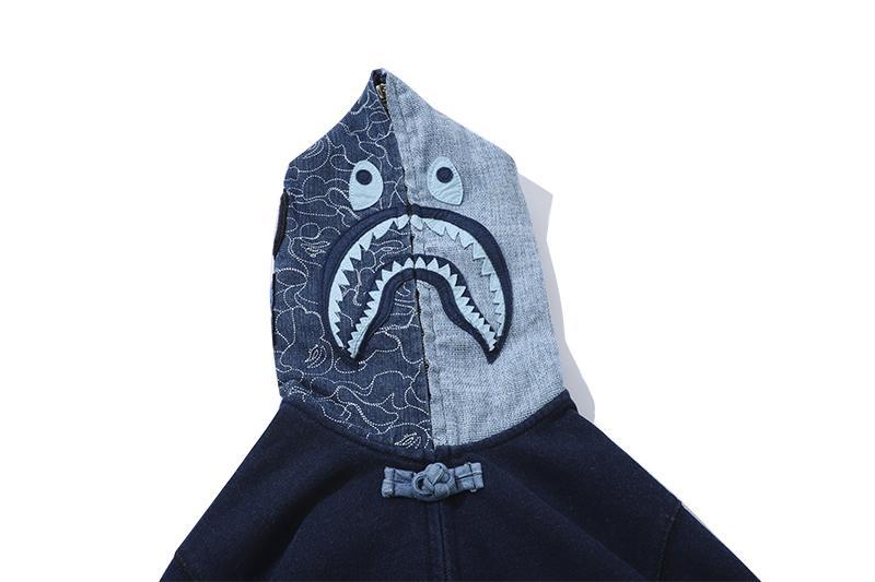 The Shark hoodie is perhaps the most iconic Bape design, featuring a full-zip hood with a shark face graphic. Rep versions often replicate this design with high fidelity (Goat).