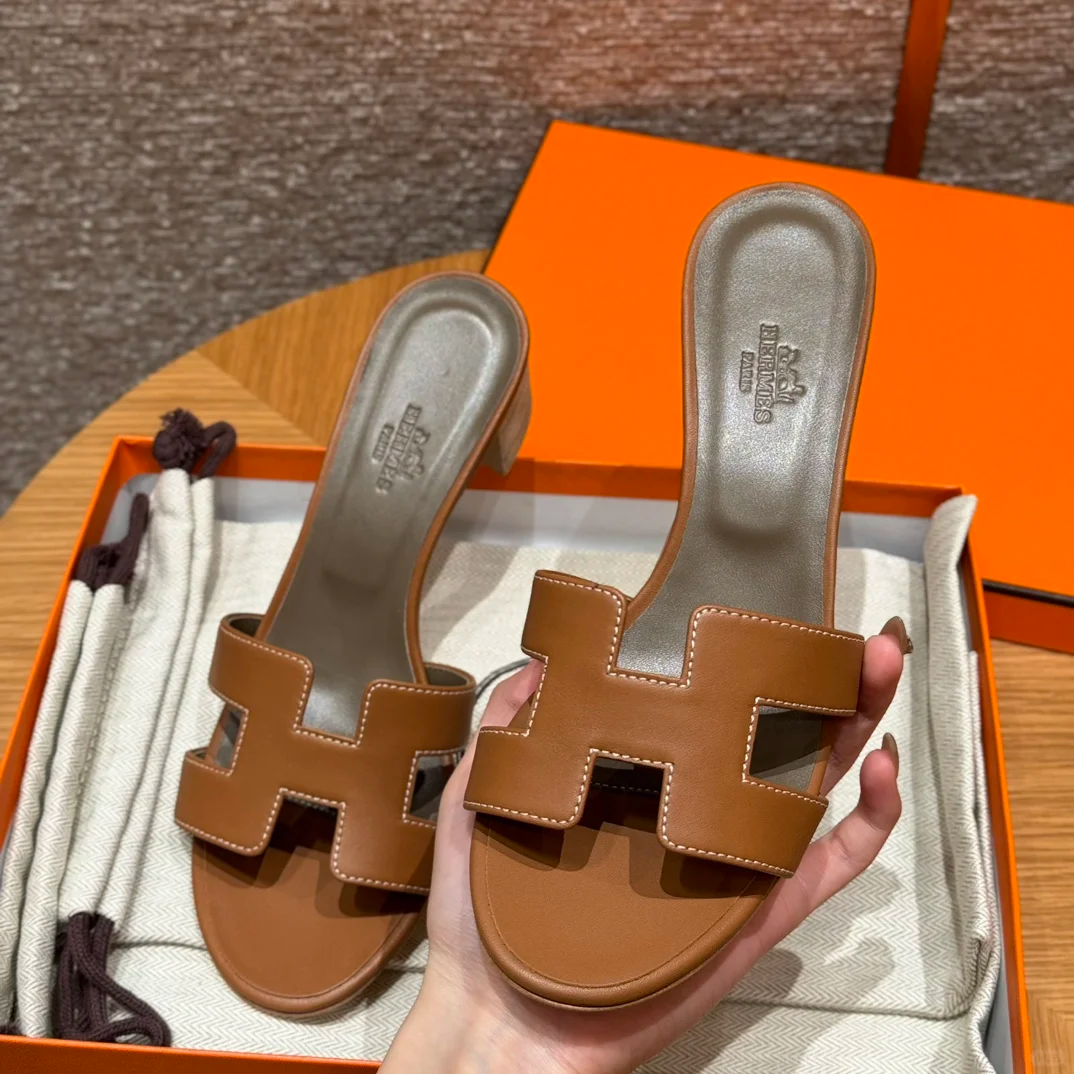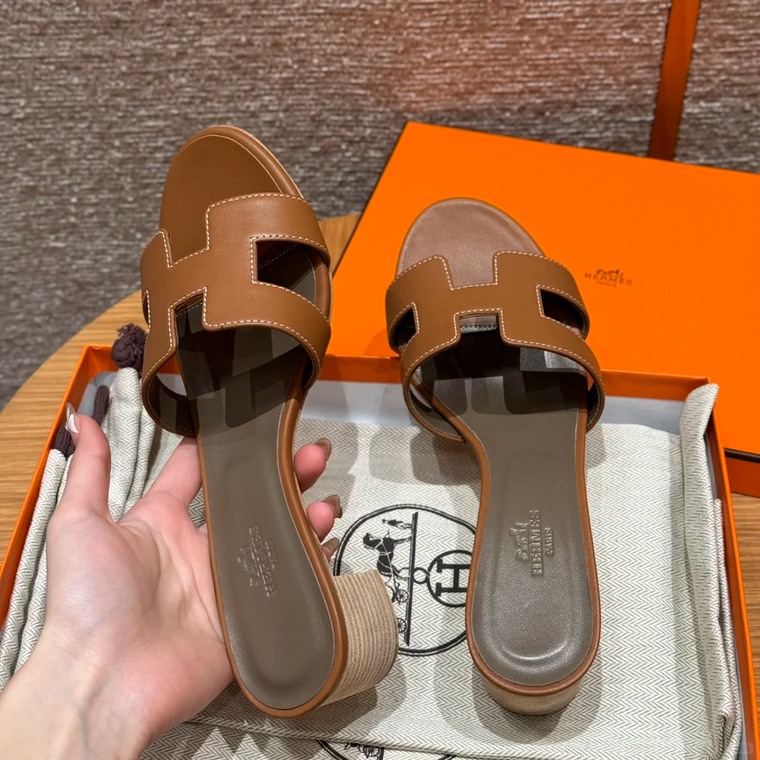 DetailCalf leather sandal with signature 'H' cutout.This silhouette is an iconic Hermès style and a must-have in every wardrobe.made in ItalyHeel height 2 inches