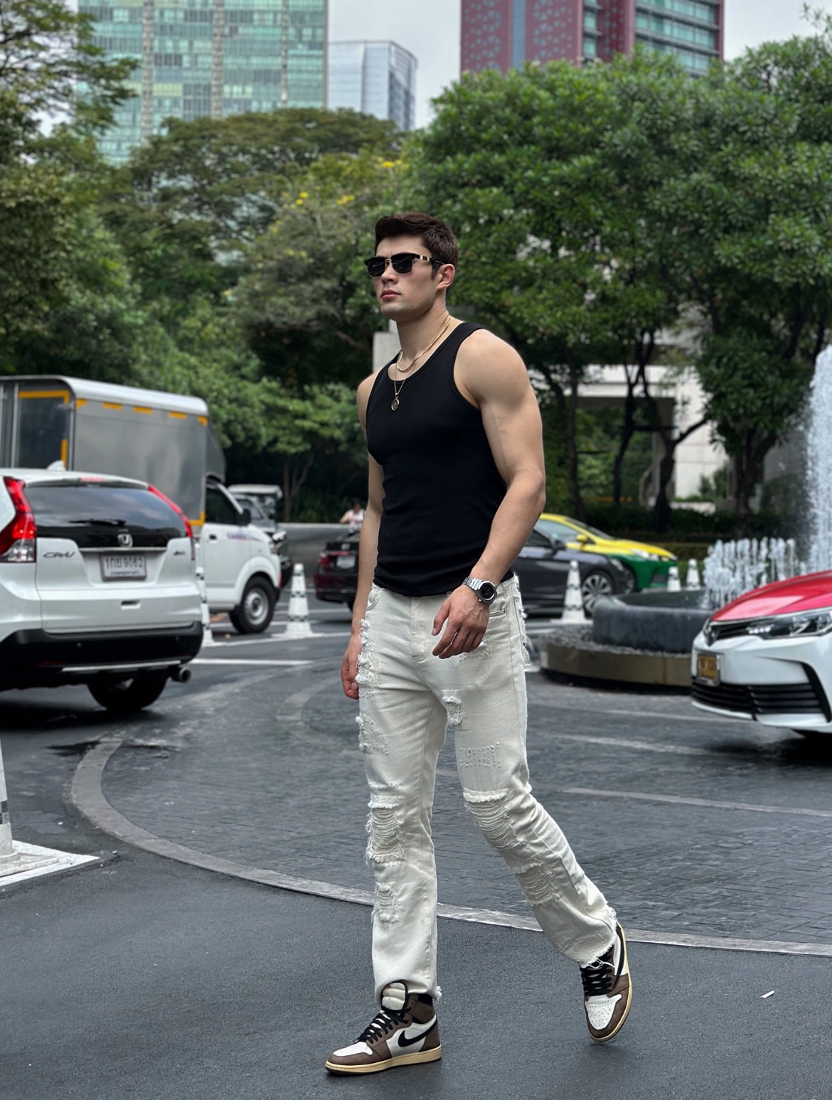 พื้นรองเท้าชั้นในของรองเท้าผ้าใบ Travis Scott x Air Jordan 1 คู่นี้มีความยืดหยุ่นสูงและสวมใส่สบายมาก มันดูทันสมัยและเท่มากเมื่อใส่กับกางเกงยีนส์และเสื้อกล้ามสีดำของฉัน และเพื่อนๆ ของฉันก็ชื่นชมฉันที่เข้ากันได้ดี